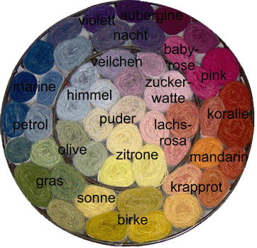 | 100% Angoraflocken gefärbt (Pflanzenfarben oder Kaltfarben) | Fr. 30.-- |